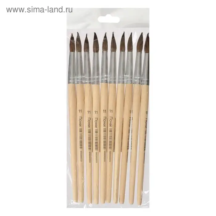 Набор кистей, "Пони", круглые, 4 штуки: № 1, 2, 3, 4, с деревянными ручками, на блистере