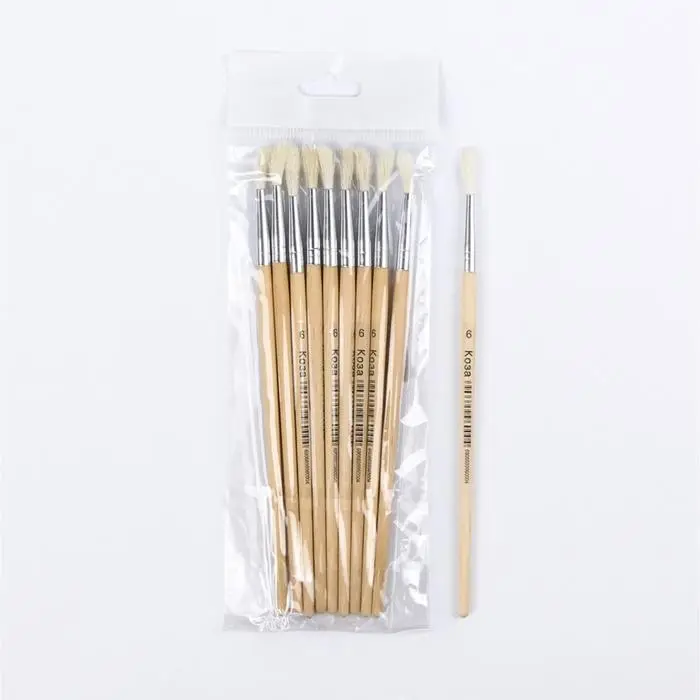 Набор кистей, щетина, плоские, 6 штук: № 1, 2, 3, 4, 5, 6, с деревянными ручками, на блистере