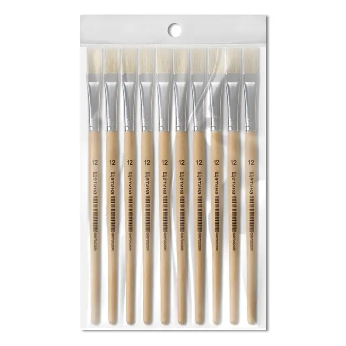 Набор кистей, щетина, плоские, 6 штук: № 1, 2, 3, 4, 5, 6, с деревянными ручками, на блистере