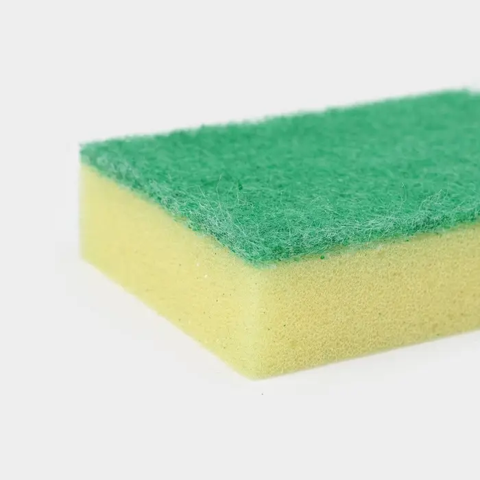 - Эффективное очищение: абразивный слой губки легко справляется с устойчивыми загрязнениями, делая поверхности сияющими.