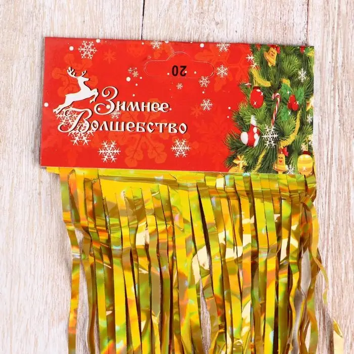 Дождик новогодний золотистый, b-7,5 см, L-150 см