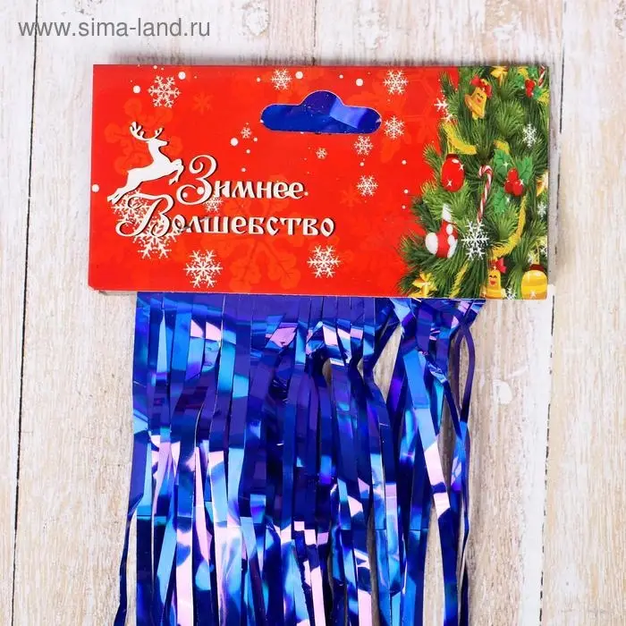 Дождик новогодний синий, b-7,5 см, L-150 см