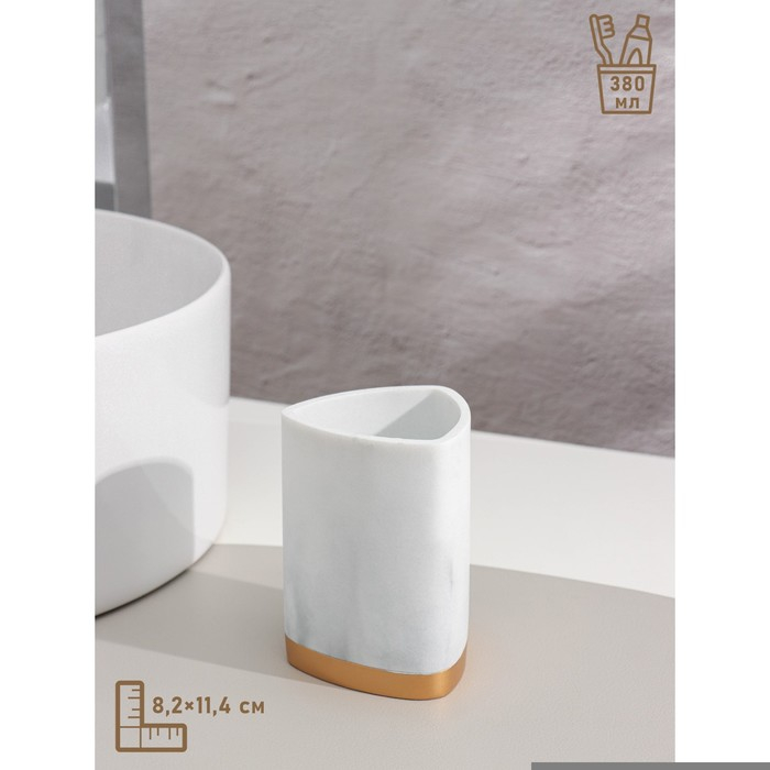 Набор аксессуаров для ванной комнаты «Мрамор», 4 предмета (дозатор 190 мл, мыльница, 2 стакана 290 мл), цвет белый