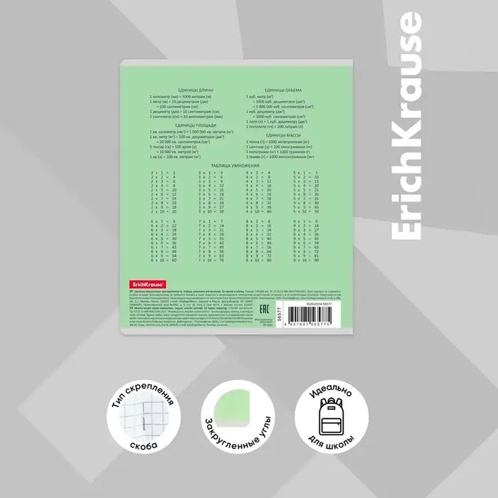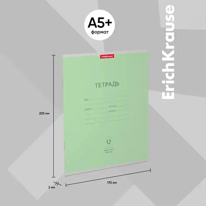 Тетрадь школьная ученическая формата А5+ (170х203 мм). Обложка из высококачественного мелованного картона плотностью 180 г/м2. В блоке 12 листов в крупную клетку с полями. Бумага офсетная плотностью 60 г/м2. Цвет линовки - синий. Скругленные уголки обложки и блока. Тип скрепления - скоба. Тетради упакованы в термоусадочную пленку по 10 штук.