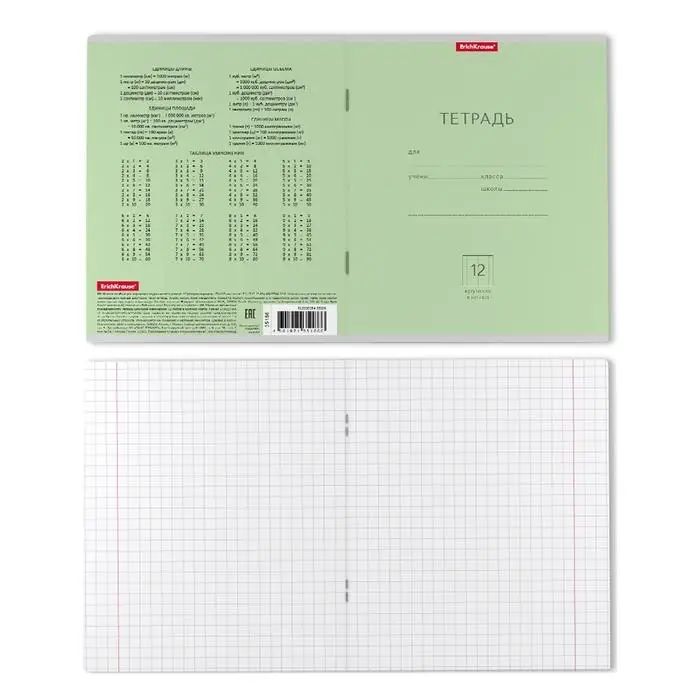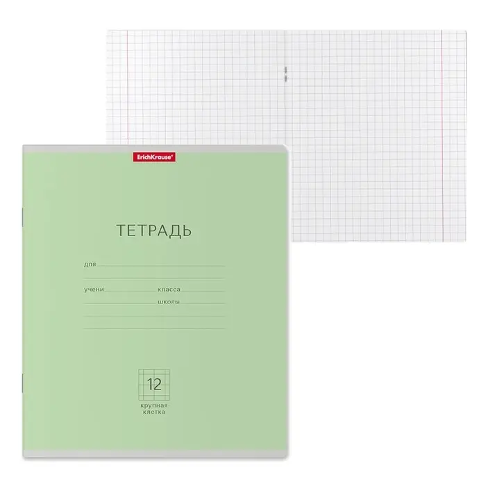 Тетрадь 12 листов в крупную клетку ErichKrause «Классика», обложка мелованный картон, зелёная