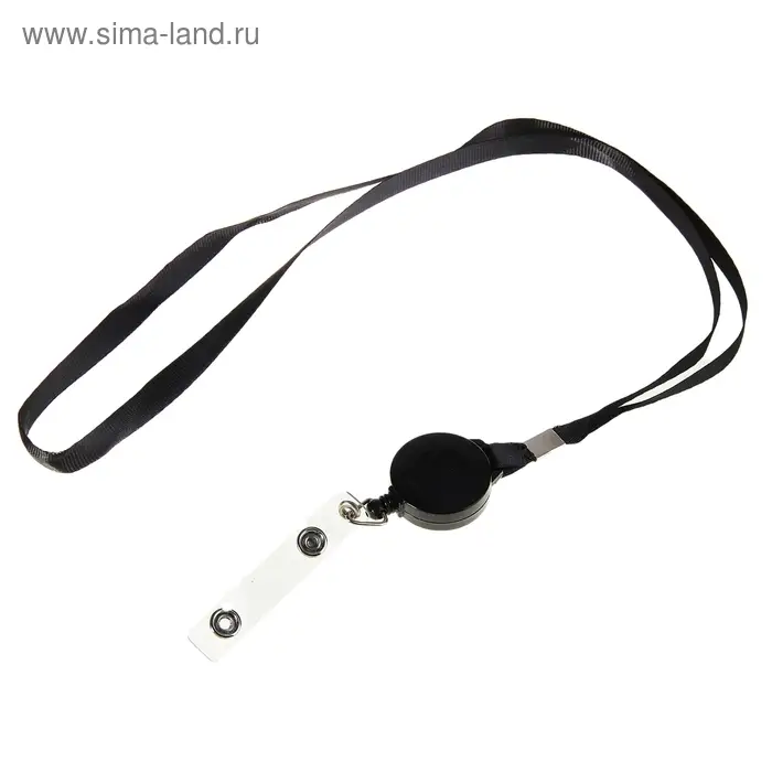Лента для бейджа, 9 мм х 85 см, с держателем - рулеткой 40 см и петлёй, на кнопке, чёрная