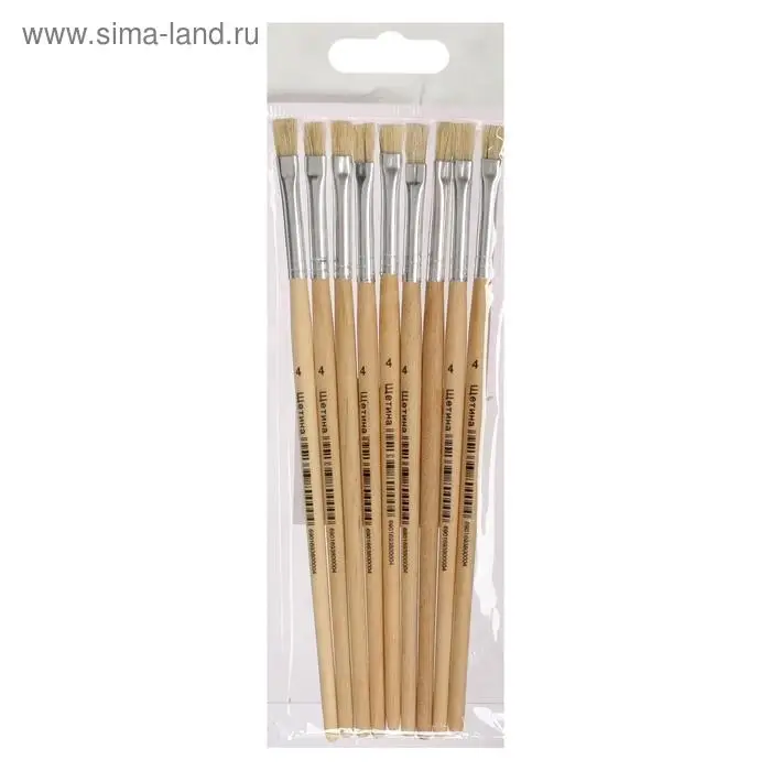 Набор кистей, щетина, плоские, 6 штук: № 1, 2, 3, 4, 5, 6, с деревянными ручками, на блистере