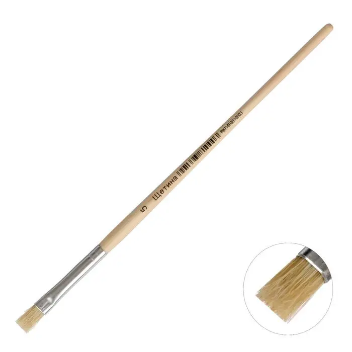 Набор кистей, щетина, плоские, 6 штук: № 1, 2, 3, 4, 5, 6, с деревянными ручками, на блистере