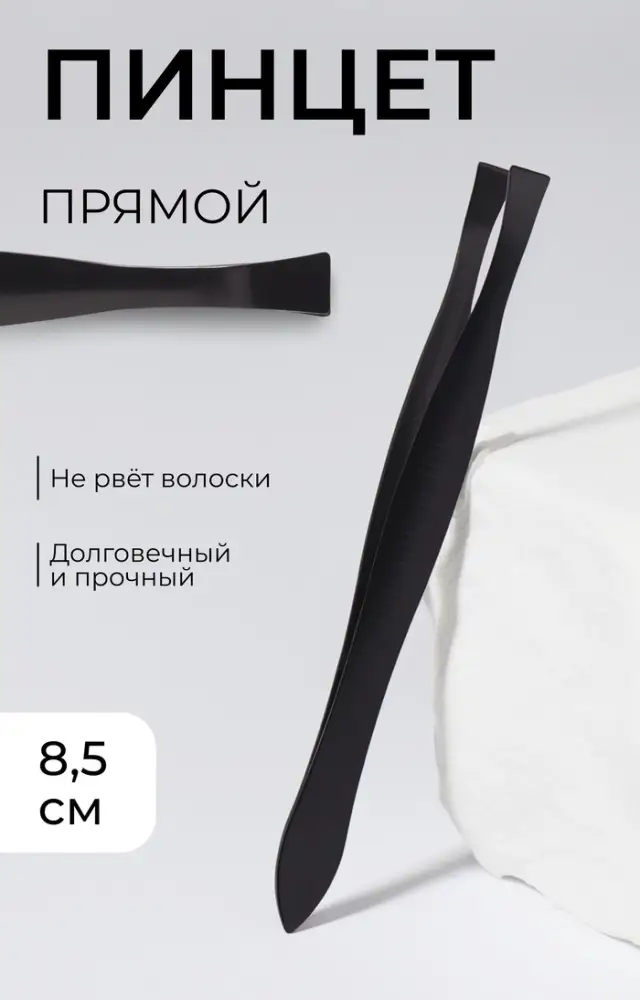 Пинцет прямой, узкий, 8.5 см, чёрный