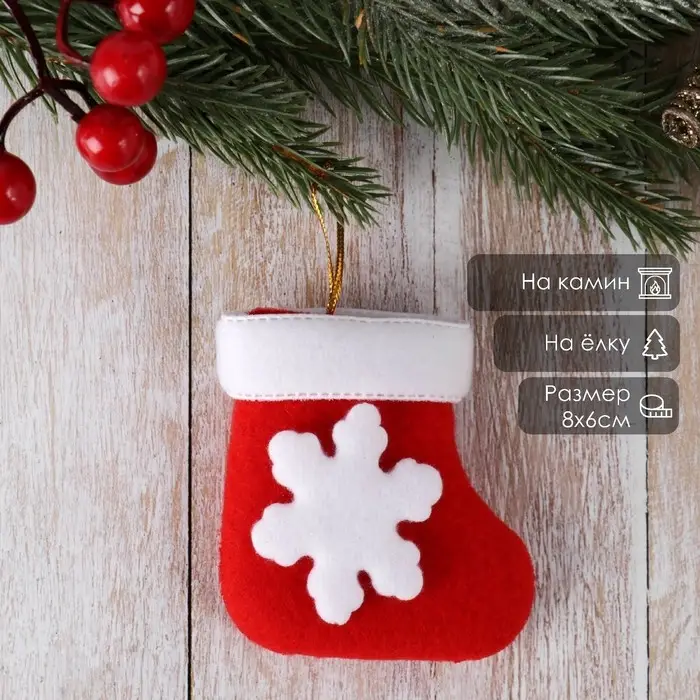 Подвеска на ёлку «Носок - белая снежинка», мягкая, 8×6 см, красный