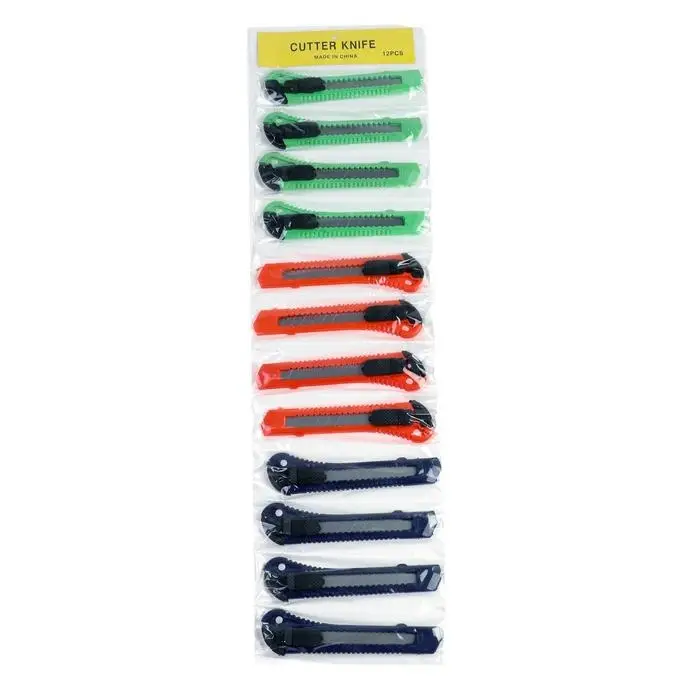 Нож канцелярский, лезвие 18 мм, корпус пластик, фиксатор, блистер, МИКС