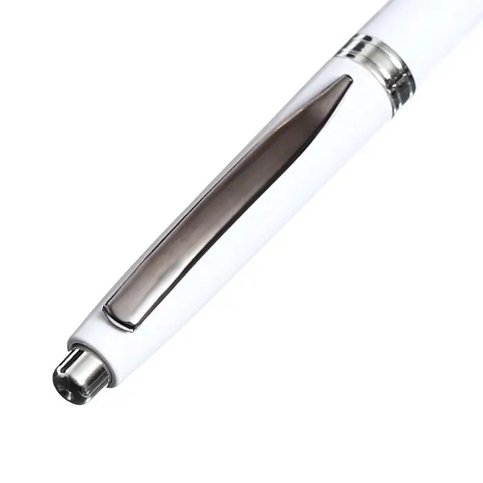 Эта автоматическая ручка с логотипом создана для тех, кто ценит аккуратность в деталях. Её тонкий пишущий узел оставляет чёткий, экономичный след, подходящий для заполнения документов и заметок на полях, а чистый белый корпус подчеркнёт элегантность вашего бренда.