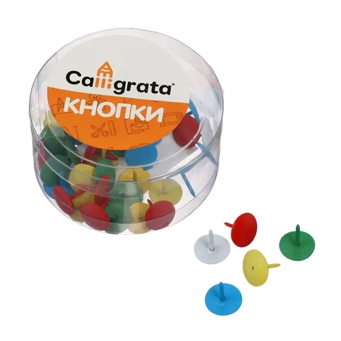 Кнопки канцелярские 12 мм, цветные, в картонной коробке, 50 штук