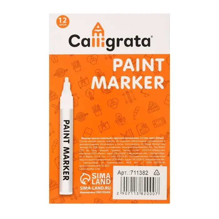Маркер-краска (лаковый) MunHwa, 4.0 мм, белая нитро-основа