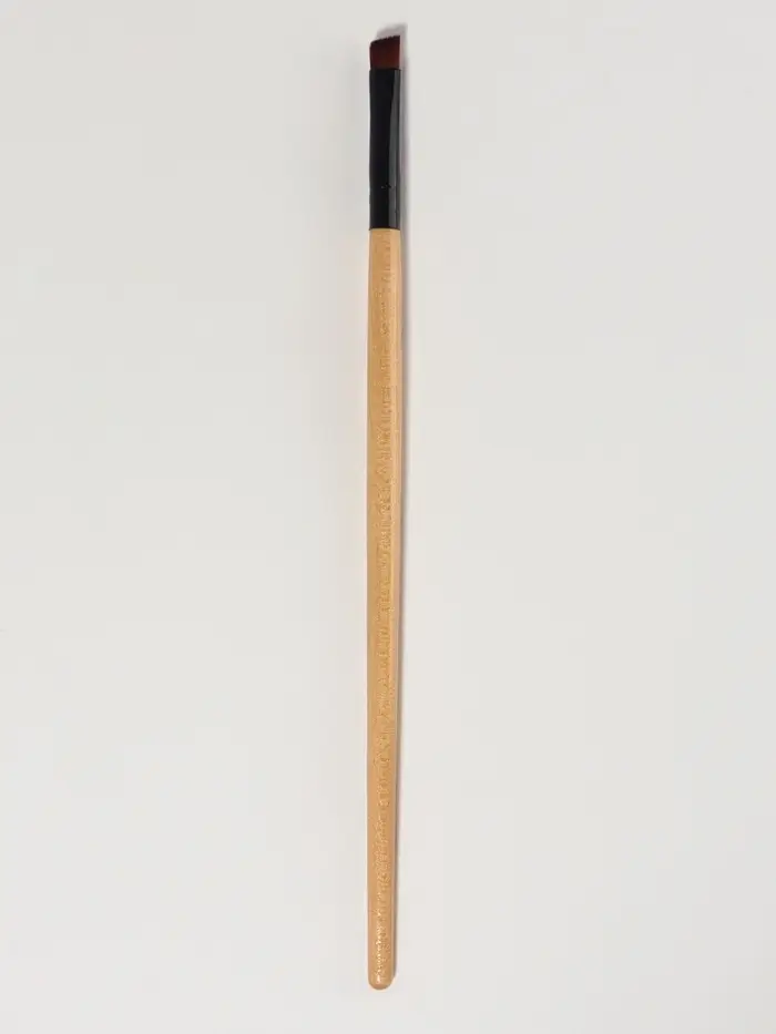 Используйте универсальную кисть для нанесения теней, проработки бровей и создания чётких линий. Она имеет плотный ворс, который подойдёт для сухих, кремовых и гелевых текстур. Также кисть подходит для окрашивания бровей и нанесения различных кремовых составов. Например, может применяться при ламинировании.