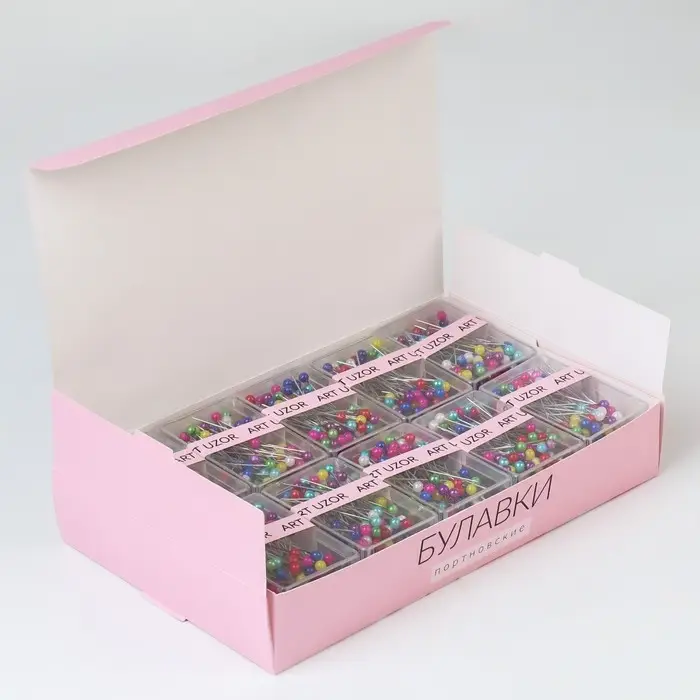 Булавки портновские Premium, стеклянная головка, 30 мм, 100 шт, цвет разноцветный