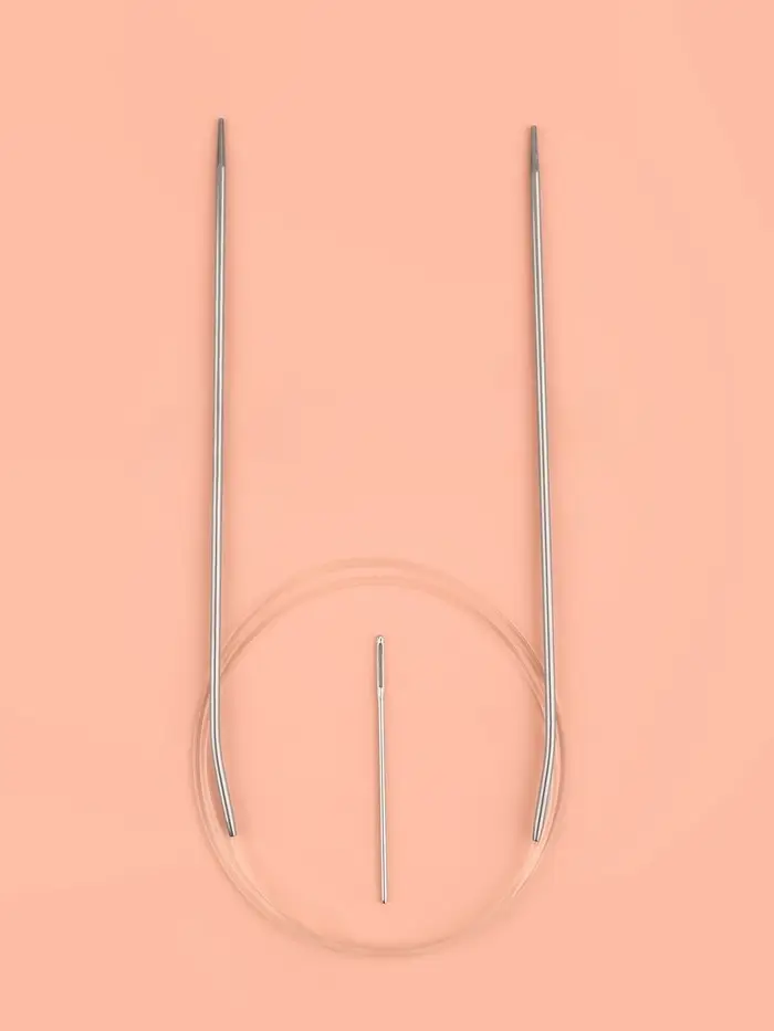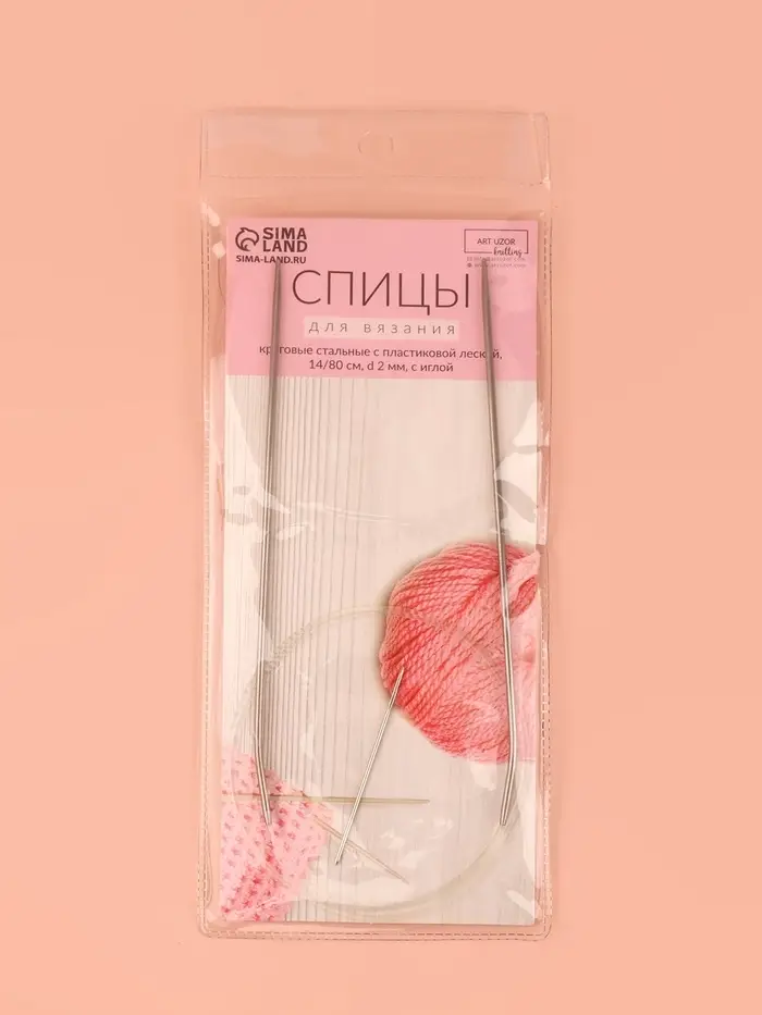 Спицы круговые, для вязания, с пластиковой леской, d=2 мм, 14/80 см, с иглой