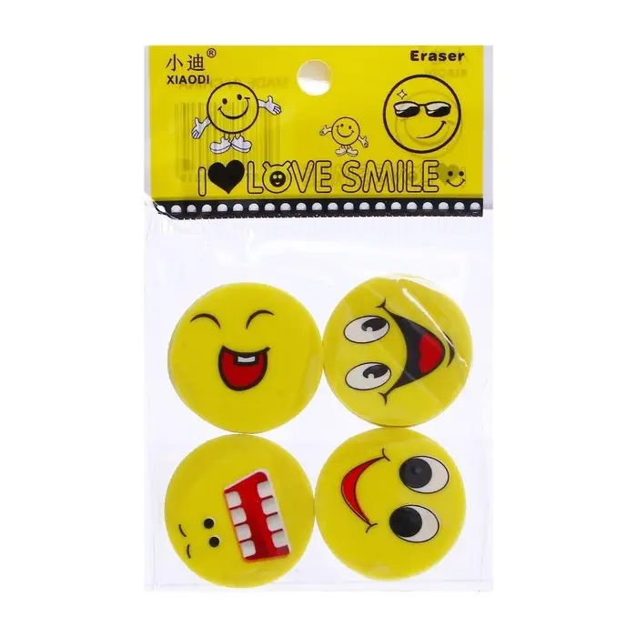 Набор ластиков фигурных Calligrata "Смайлы", 4 штуки, в блистере, МИКС станет отличным помощником для детей и взрослых в любых ситуациях: в школе, на работе или дома!