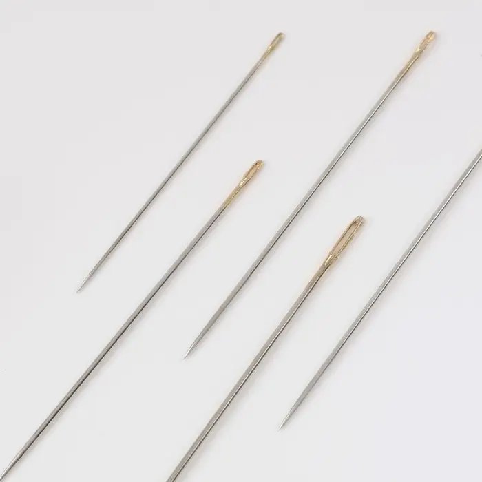 Иглы швейные для модисток, d=0.7/0.8/1.1 мм, 3.8-5.3 см, с золотым ушком, 16 шт.