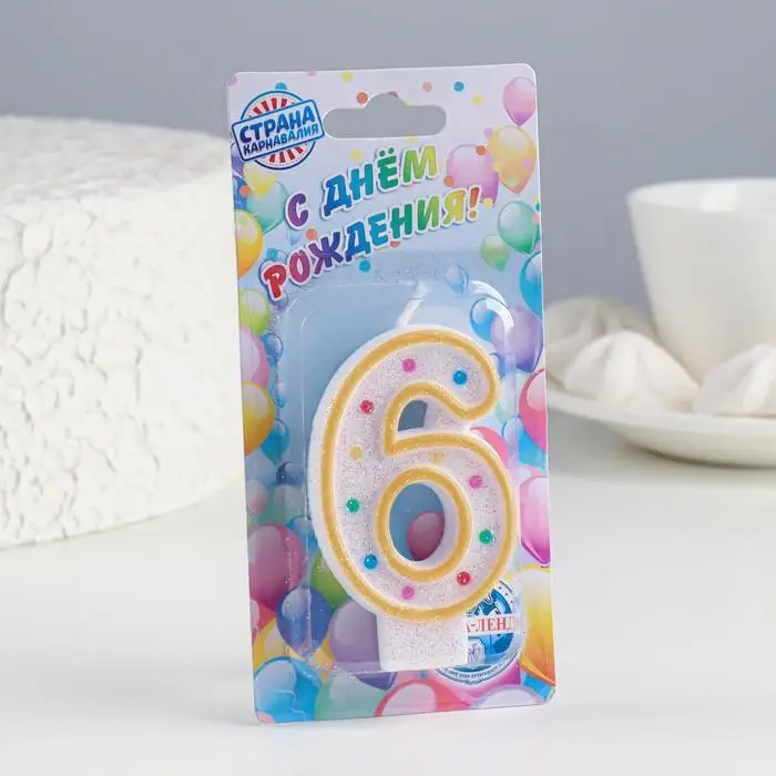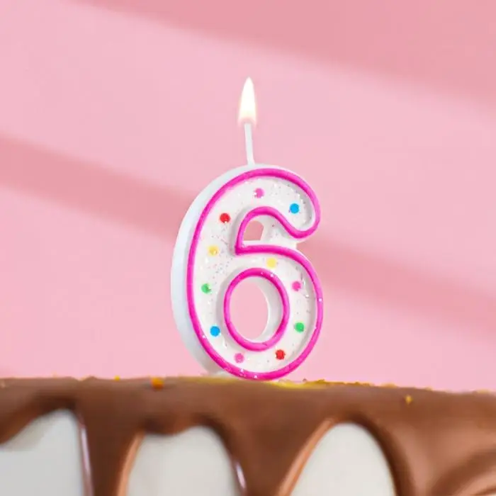 Свеча для торта «Горошек», цифра 6, блестки, 7 см, МИКС