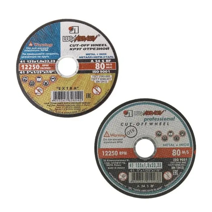 Круг отрезной по металлу «Луга» A 54 S BF 80 (14 А БУ), 125×1×22 мм