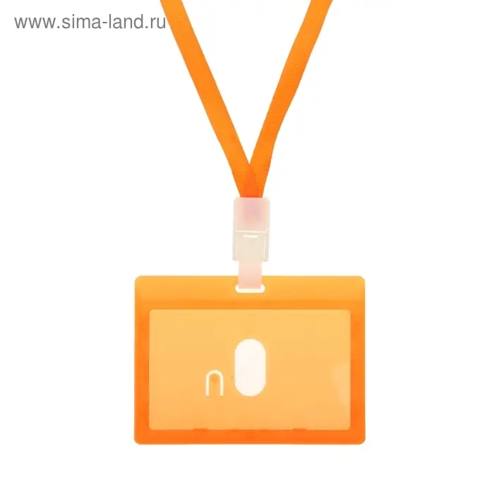 Бейдж - карман горизонтальный, внешний размер 100×74 мм, внутренний размер 90×54 мм, оранжевый, с оранжевой лентой, жёсткокаркасный
