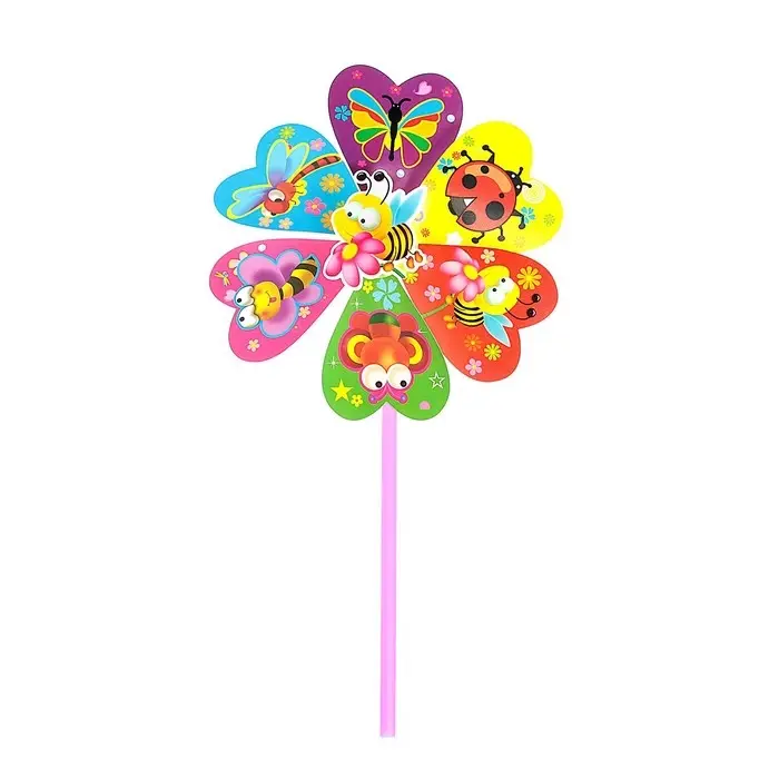 Ветерок «Насекомые», виды МИКС — это универсальная воздушная игрушка. Такая мельница поможет приучить малыша к прогулкам на свежем воздухе. С ней кроха изучит силу ветра и узнает, в какую сторону он дует. Покажите ребёнку, как дуть на игрушку, чтобы она вертелась, либо просто наблюдайте вместе с ним, как мельница придёт в движение от малейшего дуновения ветра. На природе и дома малыш будет удивлять вас невероятными трюками и забавлять заразительным смехом. Калейдоскоп красок и цветов не оставит равнодушными ни детей, ни взрослых.