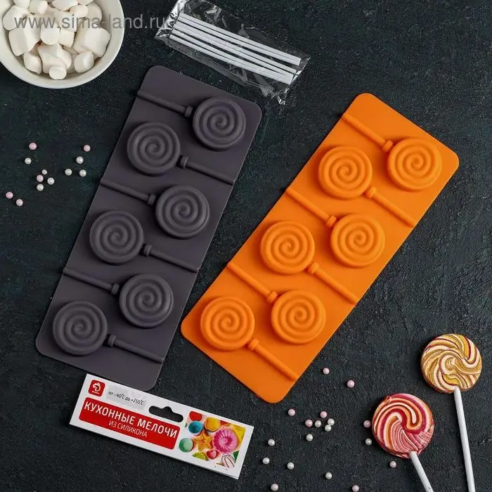 Форма для леденцов Доляна «Леденец», силикон, 9.5×24 см, 6 ячеек (8.2×3.9 см), с палочками, МИКС