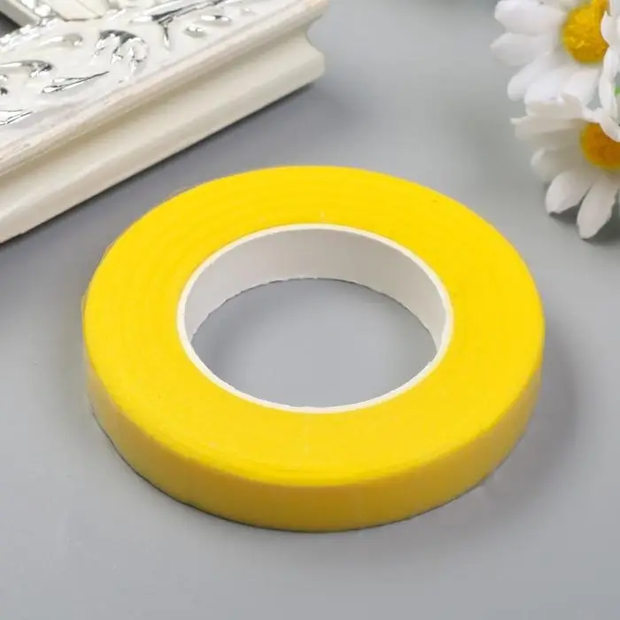 Тейп-лента или флористическая лента изготавливается из вощёной бумаги, водонепроницаема, обладает легким клеящим эффектом. Применяется при составлении букетов, композиций, для тейпирования, для обмотки проволоки при имитации стеблей.