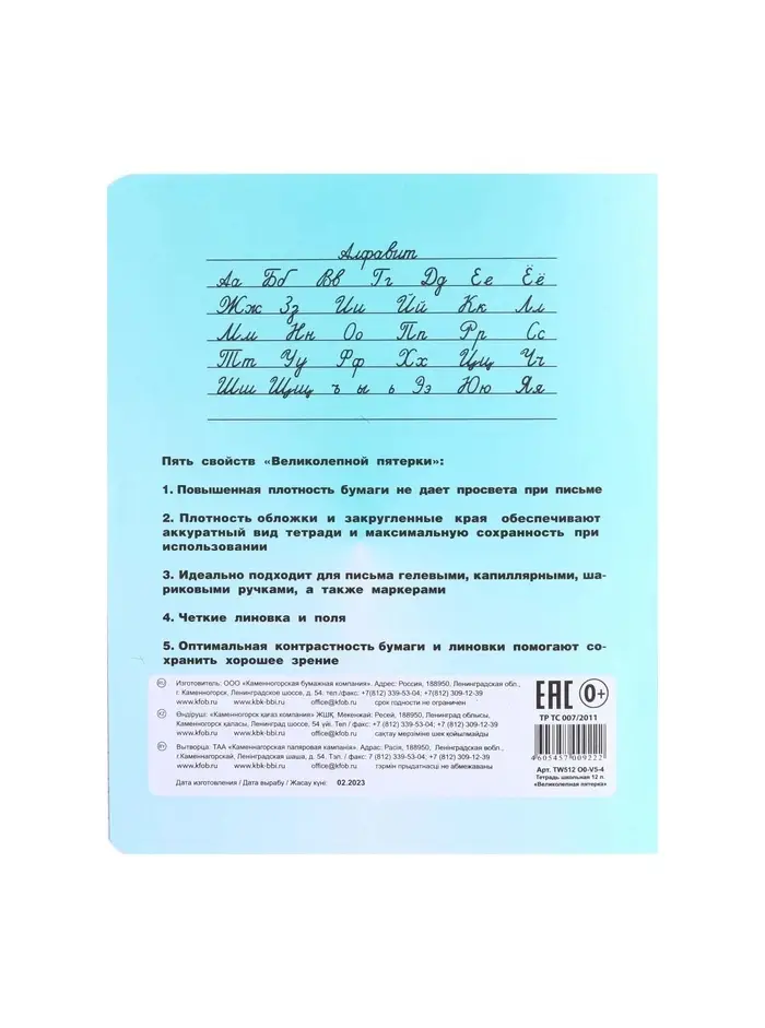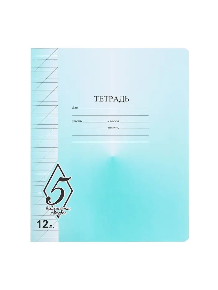 Тетрадь 12 листoв косая линейка «Великолепная пятёрка», бумажная обложка, МИКС