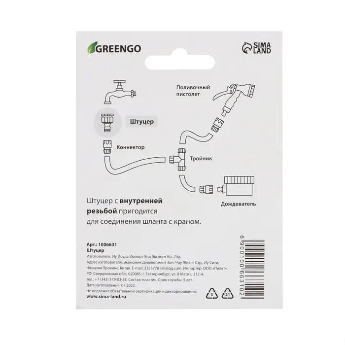 Штуцер, внутренняя резьба 1/2"–3/4" – 1", быстросъёмное соединение, прорезиненный пластик, Greengo