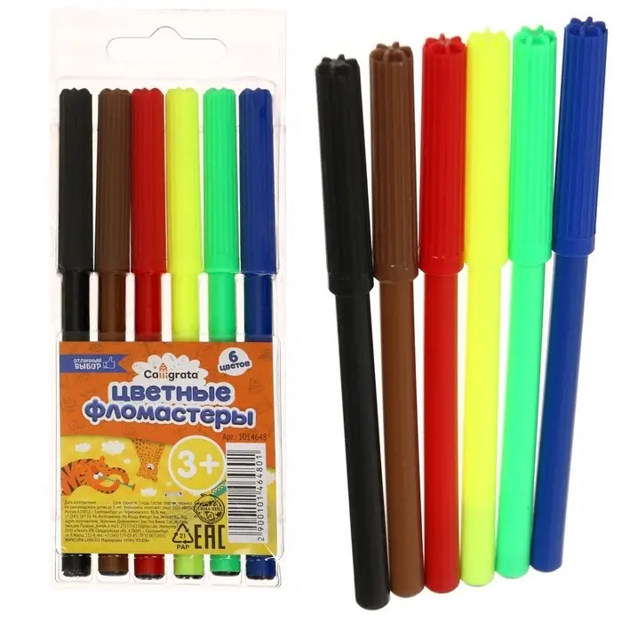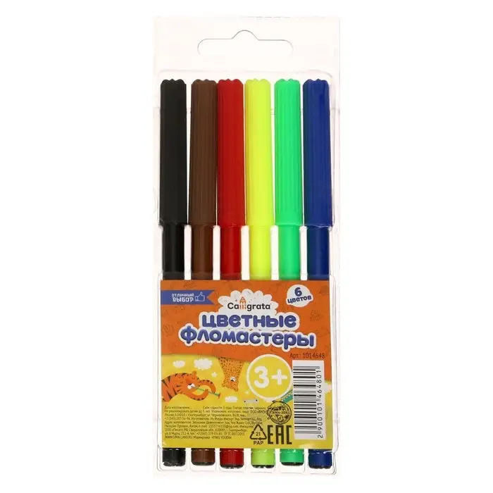 Набор фломастеров Calligrata содержит 6 ярких и насыщенных цветов.