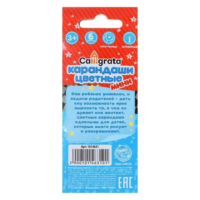 Карандаши цветные 6 цветов МИНИ Calligrata «Машинка»