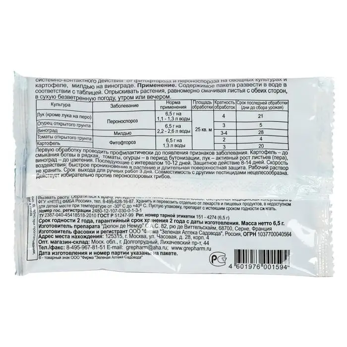 - Растворите содержимое пакета (6,5 г) в 10 литрах воды.