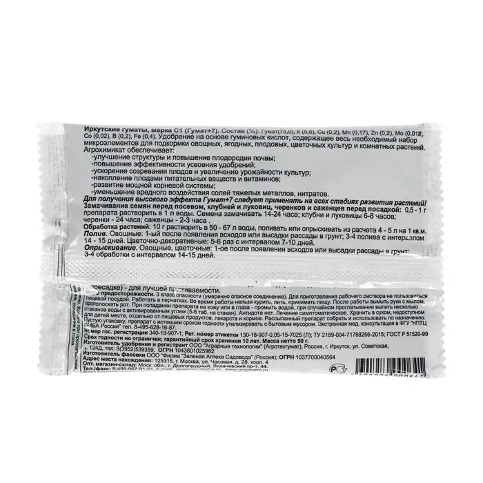 "Гумат+7" — это эффективный концентрат, способствующий улучшению роста и развития растений.