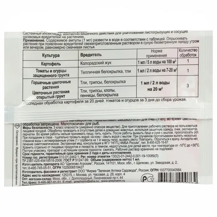 Как применять: Опрыскивать растения при появлении вредителей.