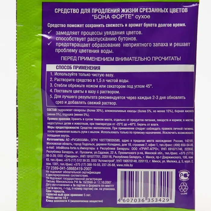 Средство для сохранения свежести срезанных цветов Бона Форте, пакетик, 15 г