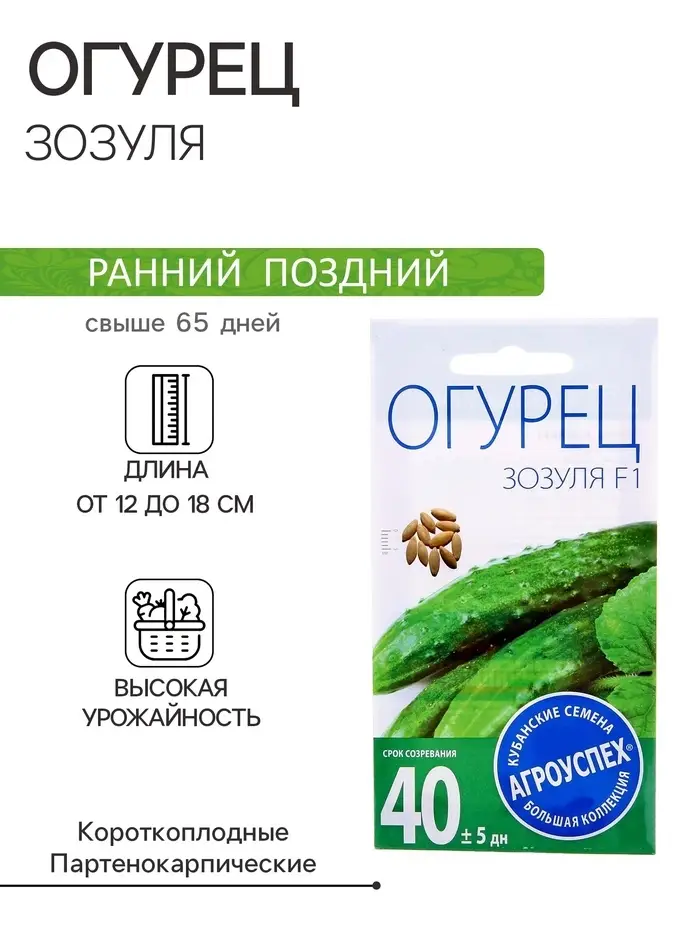 Семена Огурец Зозуля F1, партенокарпический, раннеспелый, 12 шт