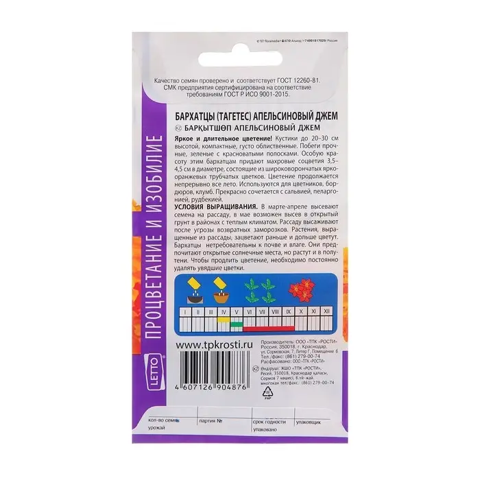 Семена цветов бархатцы Апельсиновый джем, низкорослые О, 0,3г