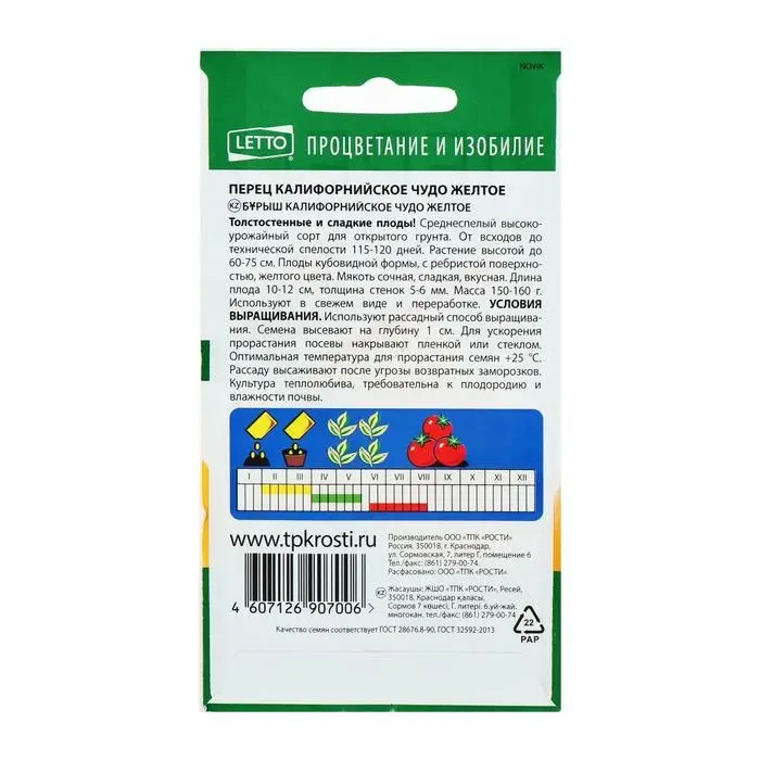 Семена Перец сладкий "Калифорнийское чудо желтое", 0,1 гр