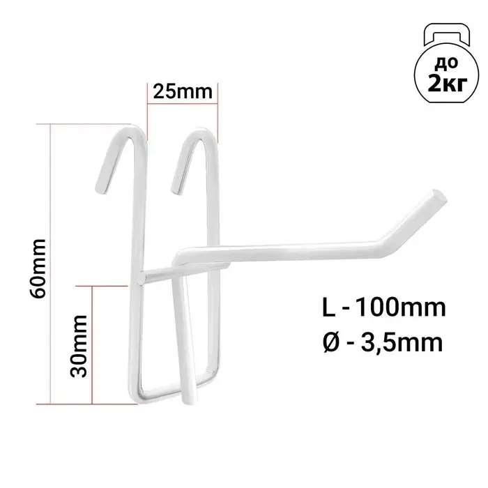 Крючок на сетку одинарный, d=3.5 мм, L=10 см, белый