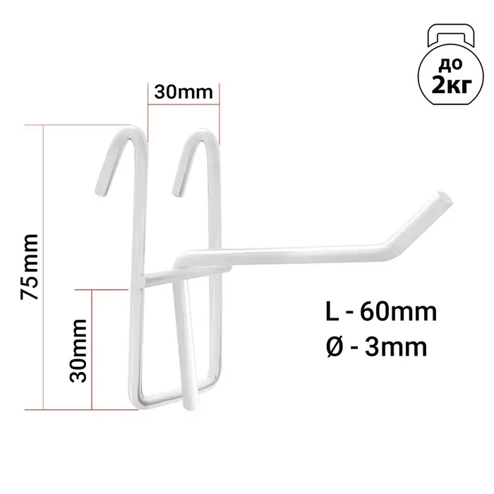 Крючок на сетку одинарный, d=3мм, L=6 см, цвет белый