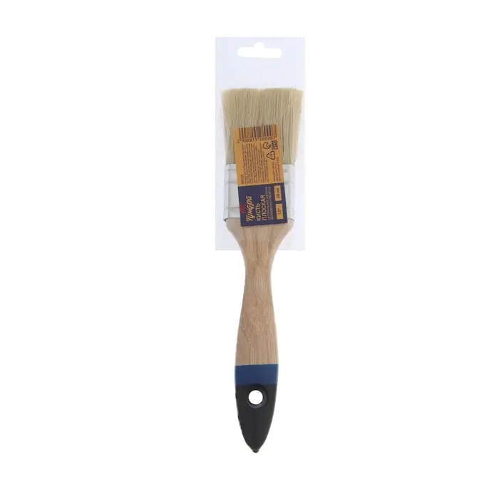 Кисть плоская ТУНДРА, натуральная щетина, деревянная рукоятка, 1.5", 38 мм