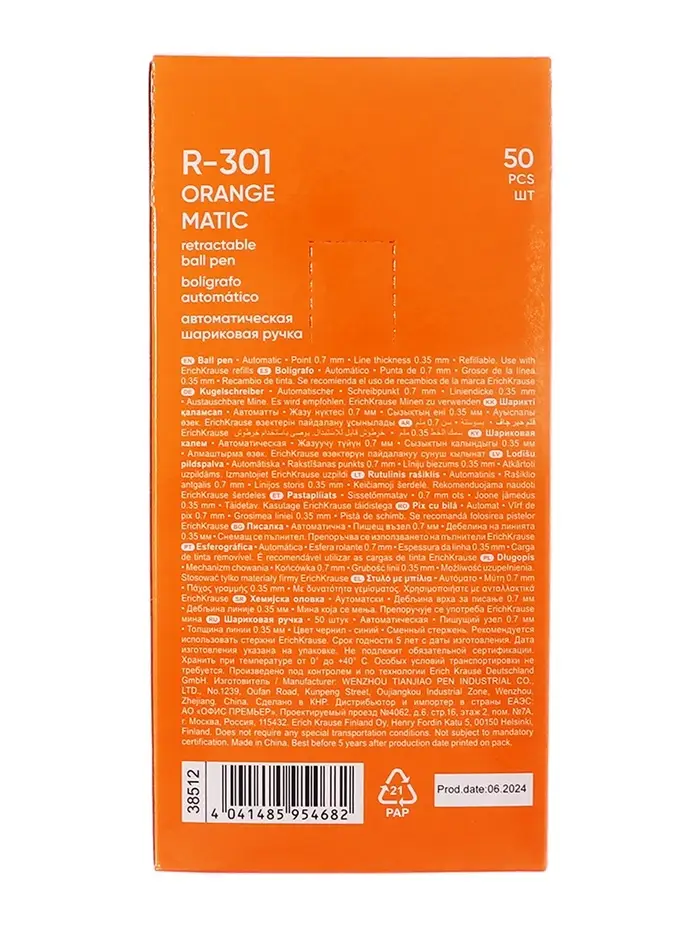 Автоматическая шариковая ручка ErichKrause R-301 Matic создана для активного рабочего дня. Её яркий акцент и надёжная конструкция поддерживают вас, когда нужно быстро фиксировать идеи, вести конспекты или составлять списки задач.