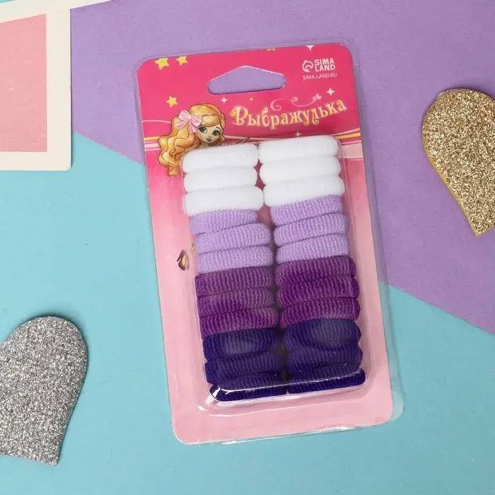 Резинка для волос "Малышка" (набор 24 шт) бело-фиолетовый
