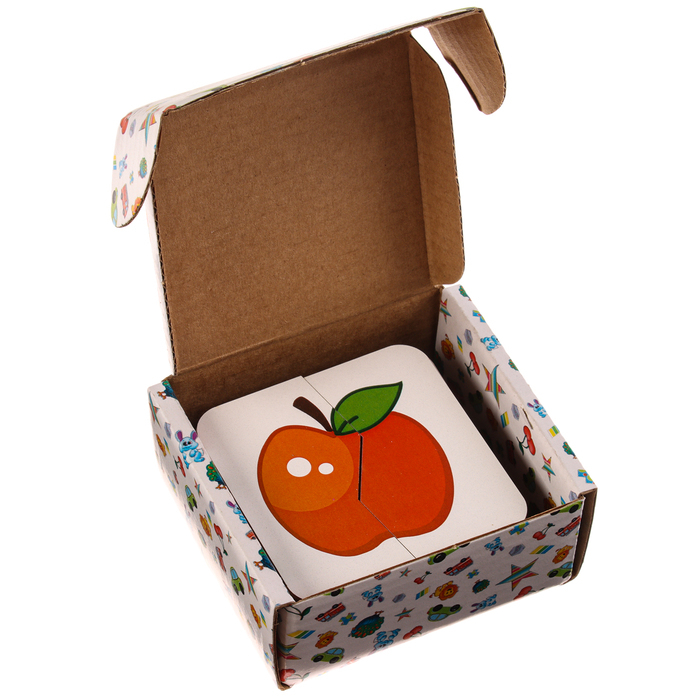 - В комплекте есть коробка, в которой удобно хранить картинки-половинки.