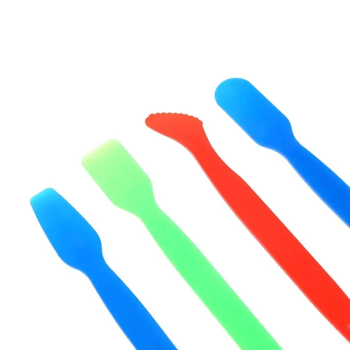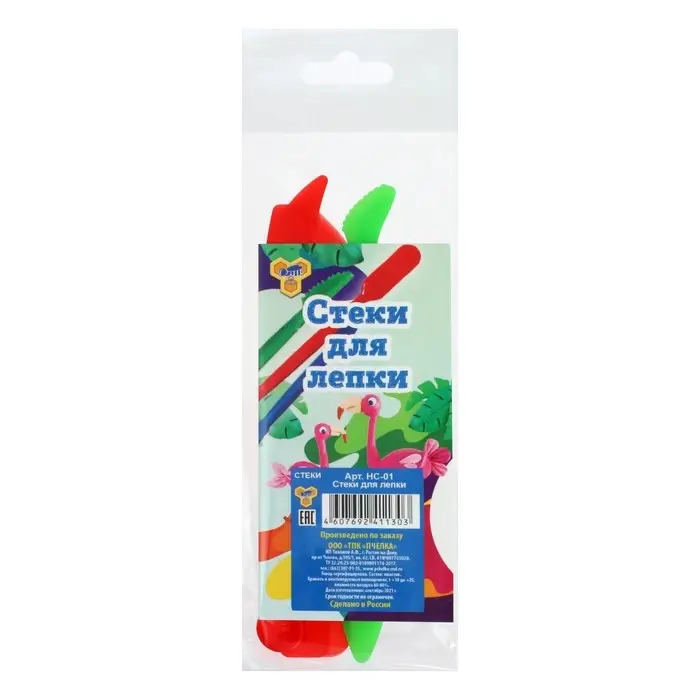 - В наборе 4 стека для лепки разного вида, назначения и цветов (красный, зеленый, синий).