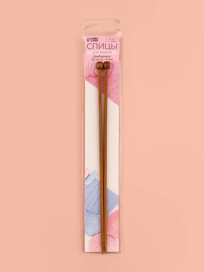 Спицы для вязания, прямые, d=4 мм, 25 см, 2 шт.