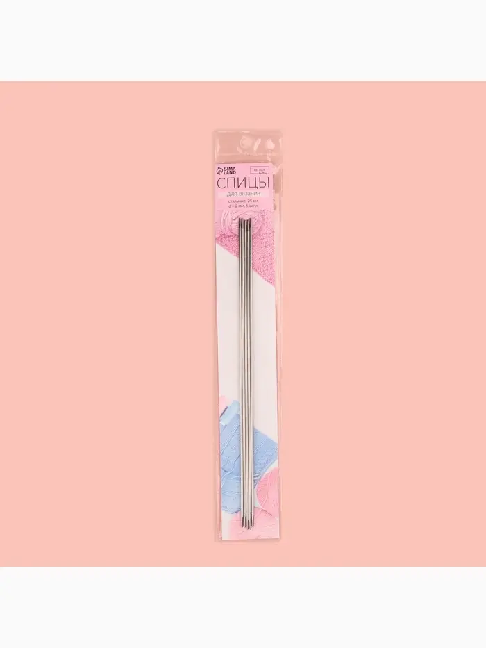 Спицы для вязания, чулочные, d=2 мм, 24 см, 5 шт.