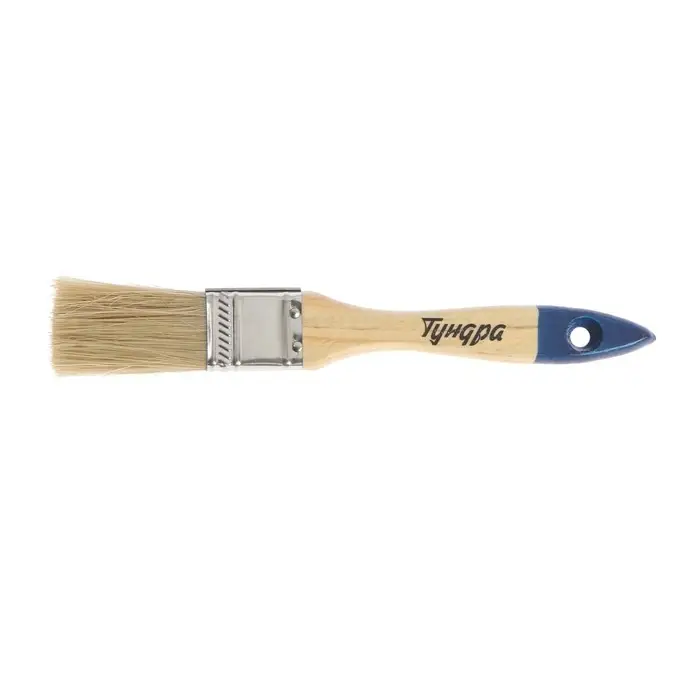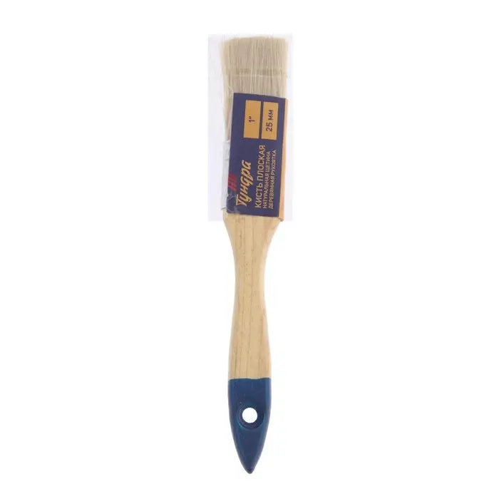 Кисть плоская ТУНДРА, натуральная щетина, деревянная рукоятка, 1", 25 мм